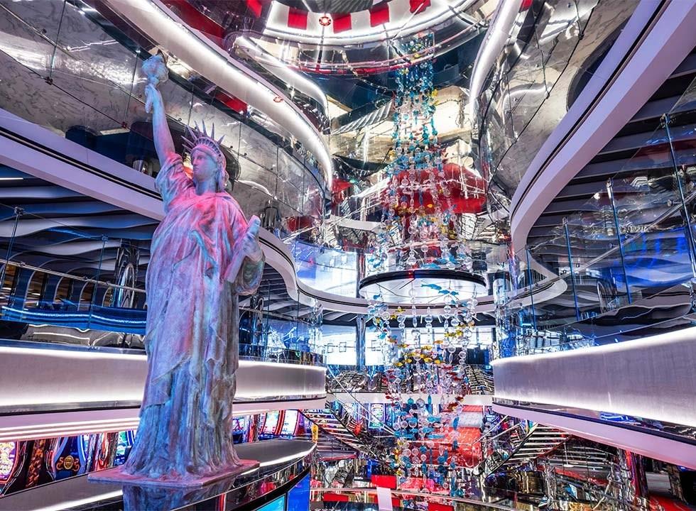 Two-deck aft lounge with live music.